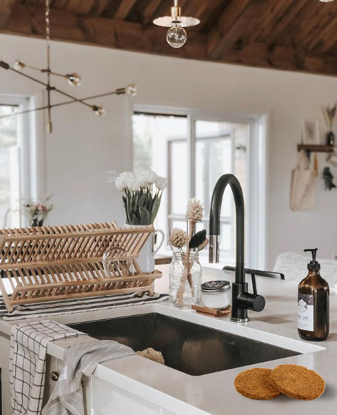 - Made from coconut fibre these are naturally anti-microbial and keeps the dishes whistle clean.