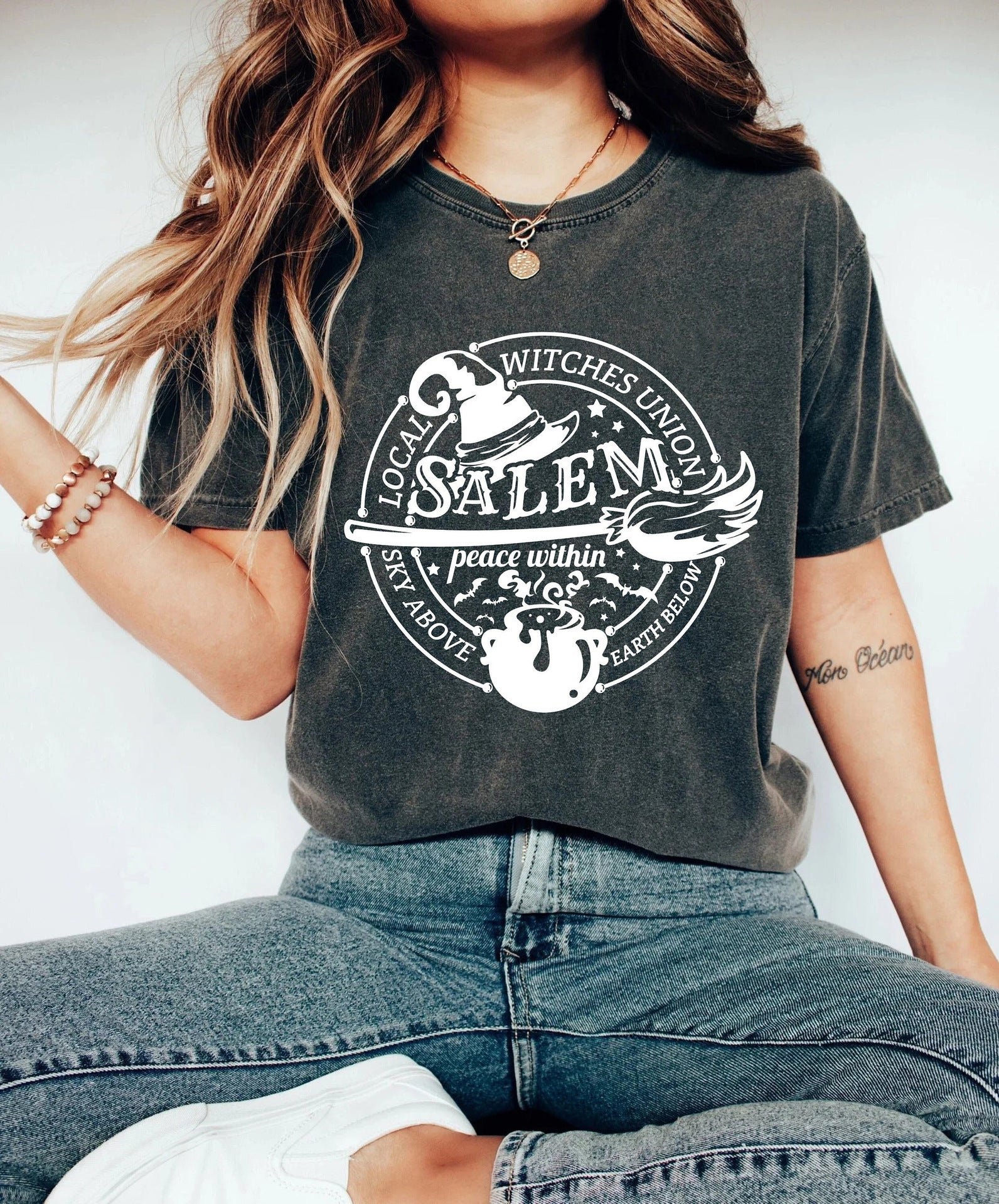 Washed Vintage Cotton Autumn Skull Pumpkin Halloween Short Sleeve